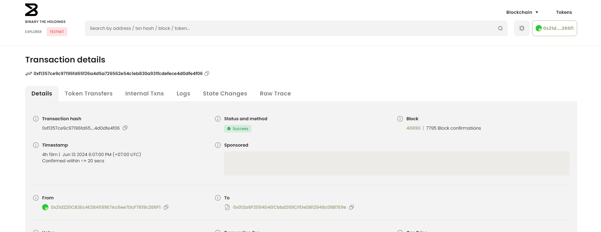 2. Click on the block explorer link for more details: